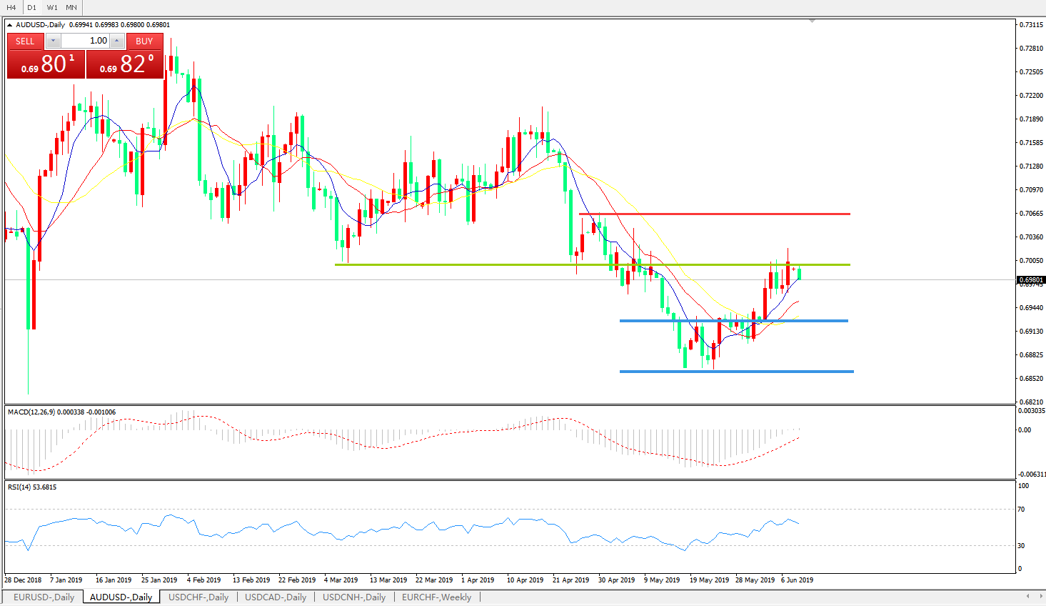 备选策略:0.7000上方看涨,目标0.70500.7100