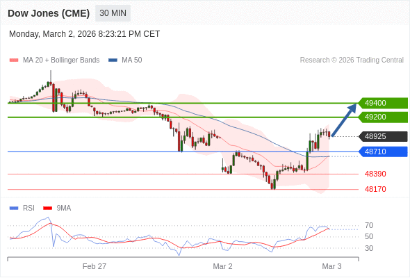 在 48710 之上,看涨,目标价位为 49200 ,然后为 49400 。