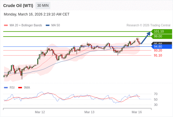 在 94.80 之上,看涨,目标价位为 99.00 ,然后为 101.10 。