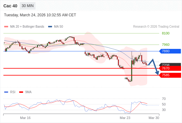 Cac 40 当日内: 存在压力。