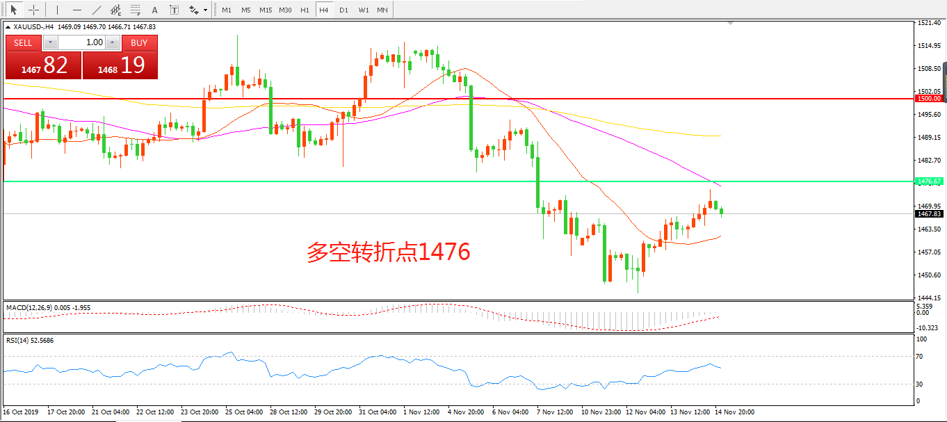 周四(11月21日)凌晨03:00,美联储公布的10月政策会议纪要显示,美联储官员普遍认为,除非经济状况发生重大变化,否则他们可能不需要再次降息,与鲍威尔表态表示一致。纪要出炉之后,金价反应平淡,但此前受贸易消息刺激,金价激烈震荡近10美元,最终收报1474.29美元/盎司。在美联储未来趋于按兵不动的情况下,市场将格外注意贸易磋商的进展,有风吹草动即有可能引发金价涨跌。