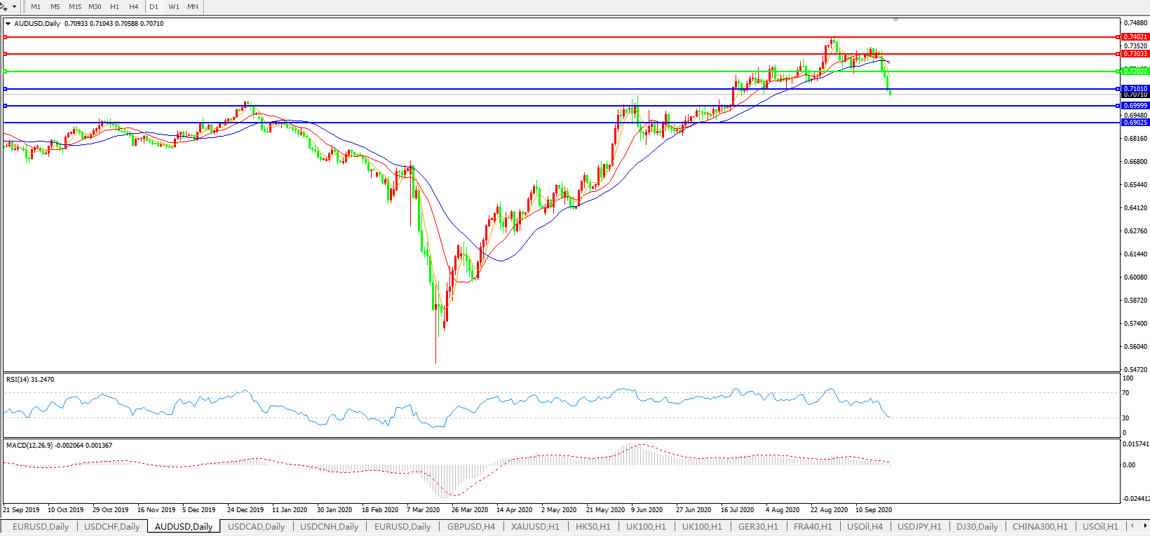 澳元兑美元AUDUSD 日线图: