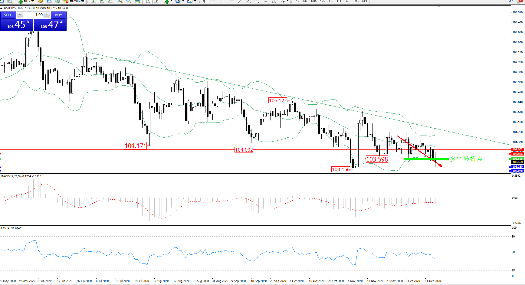 多空转折点:103.598