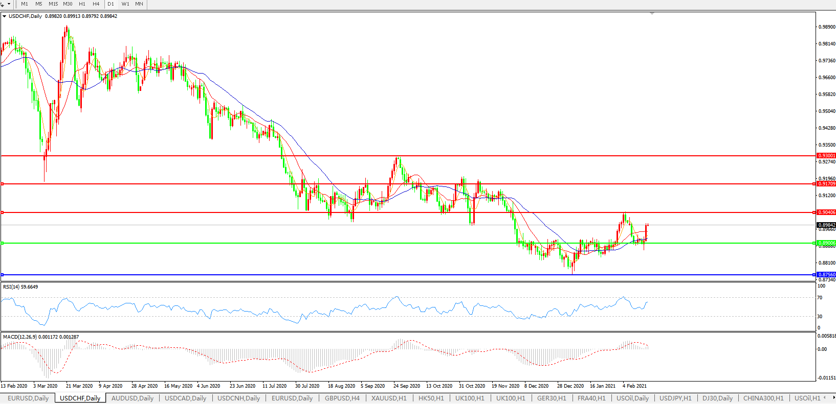 美元兑瑞郎USDCHF 日线图: