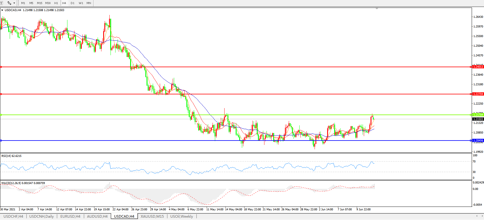 美元兑加元USDCAD    4小时图: