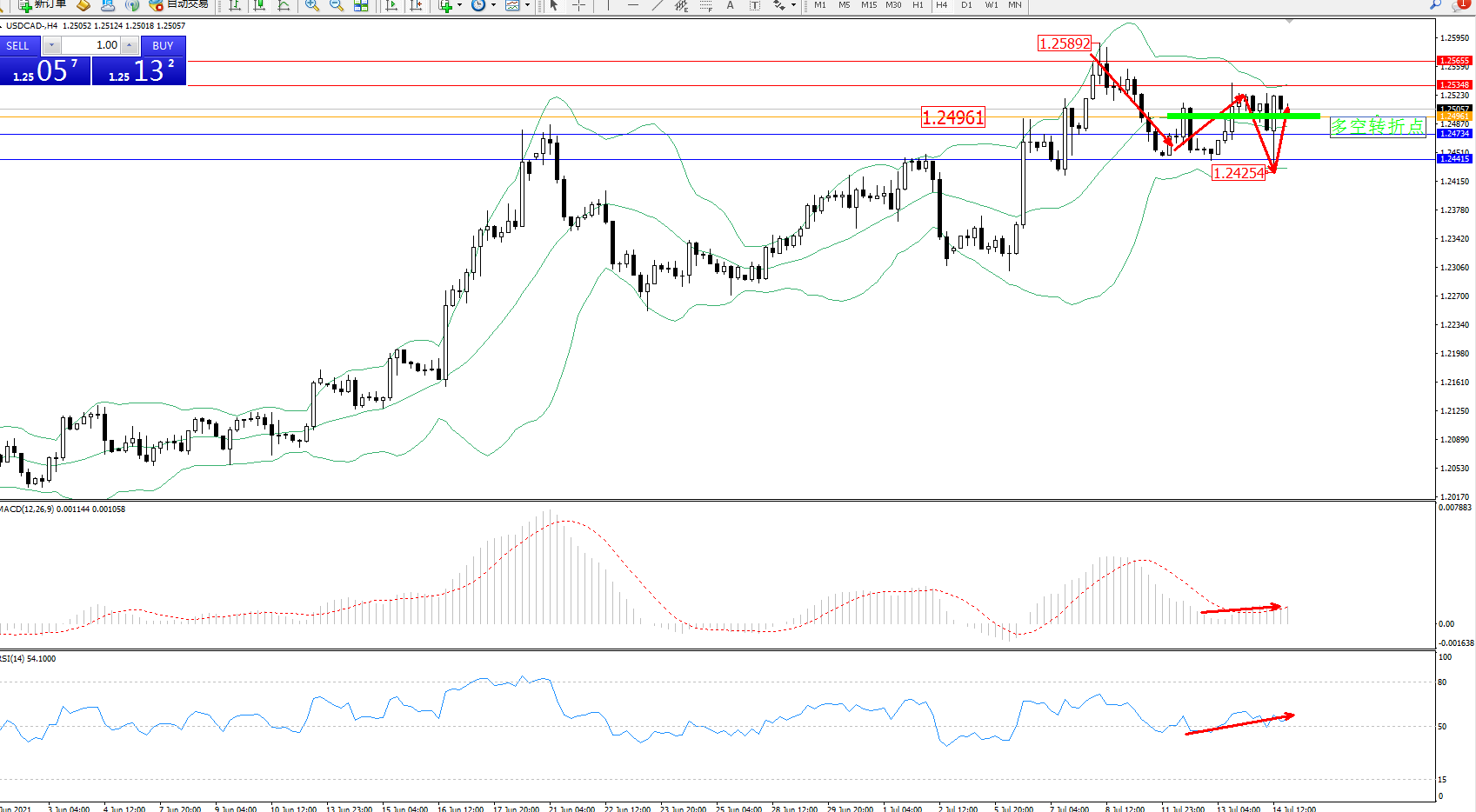 美元加元USDCAD——4小时K线图显示: