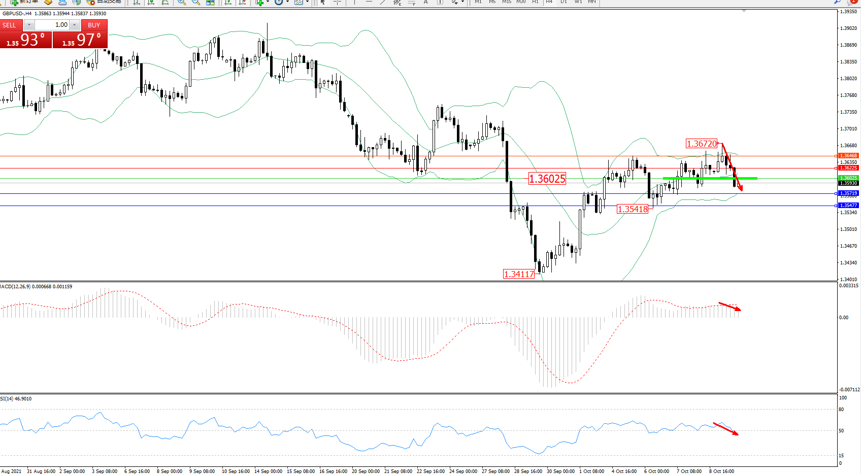 交易策略:1.36025下方看跌,目标1.35719、1.35477