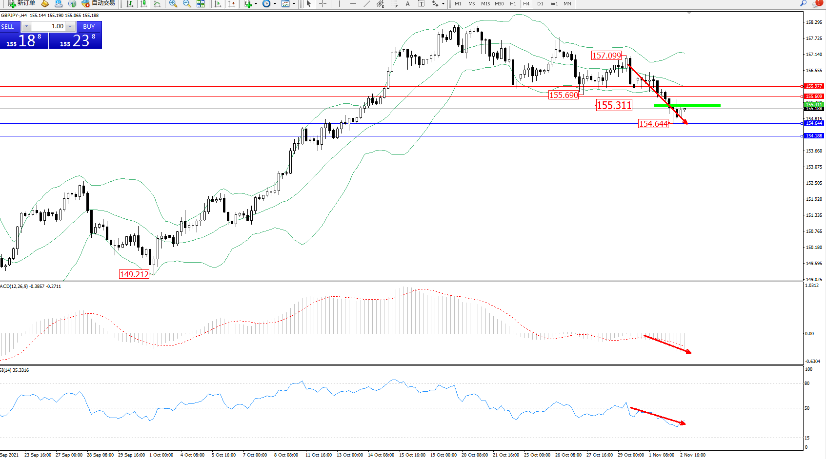 交易策略:155.311下方看跌,目标156.644、154.188