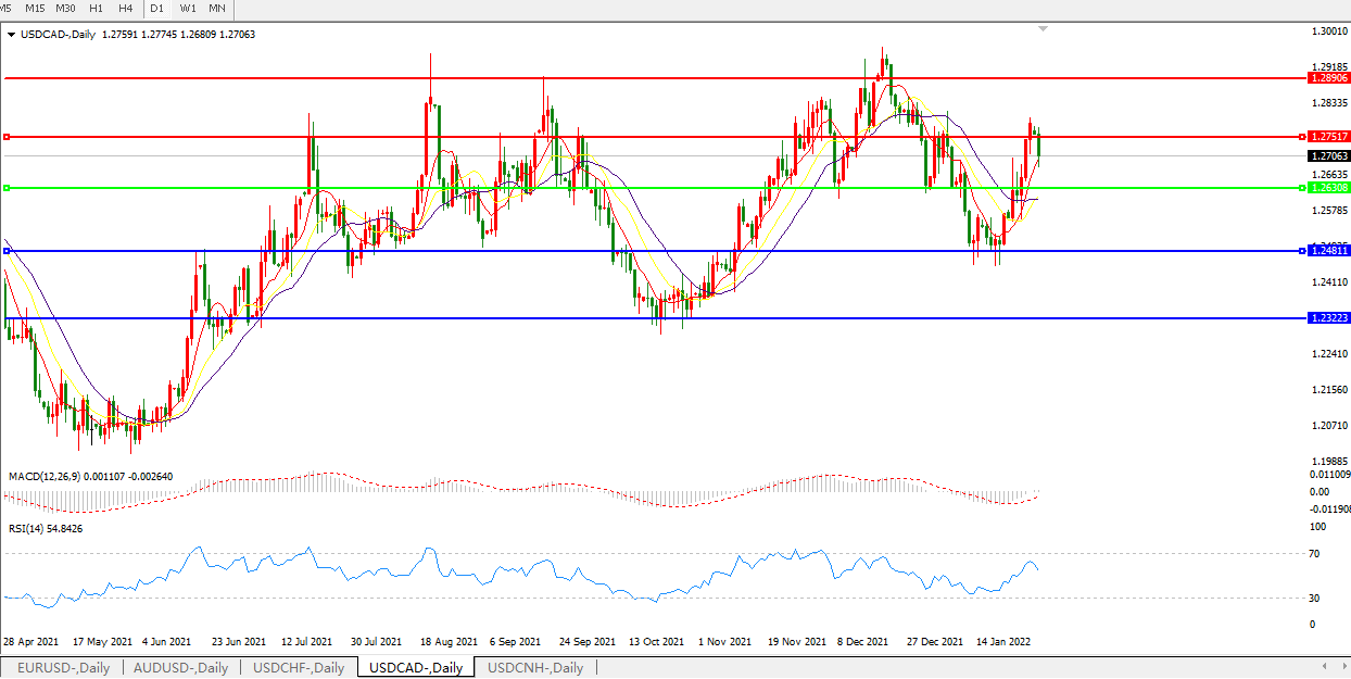 美元兑加元USDCAD 日线图: