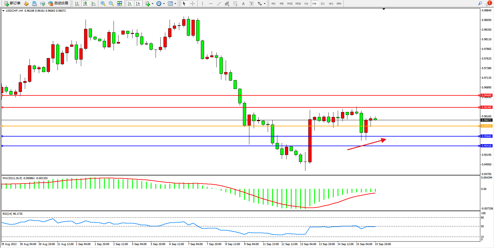 交易策略:0.95918上方看涨,目标0.96388、0.96689