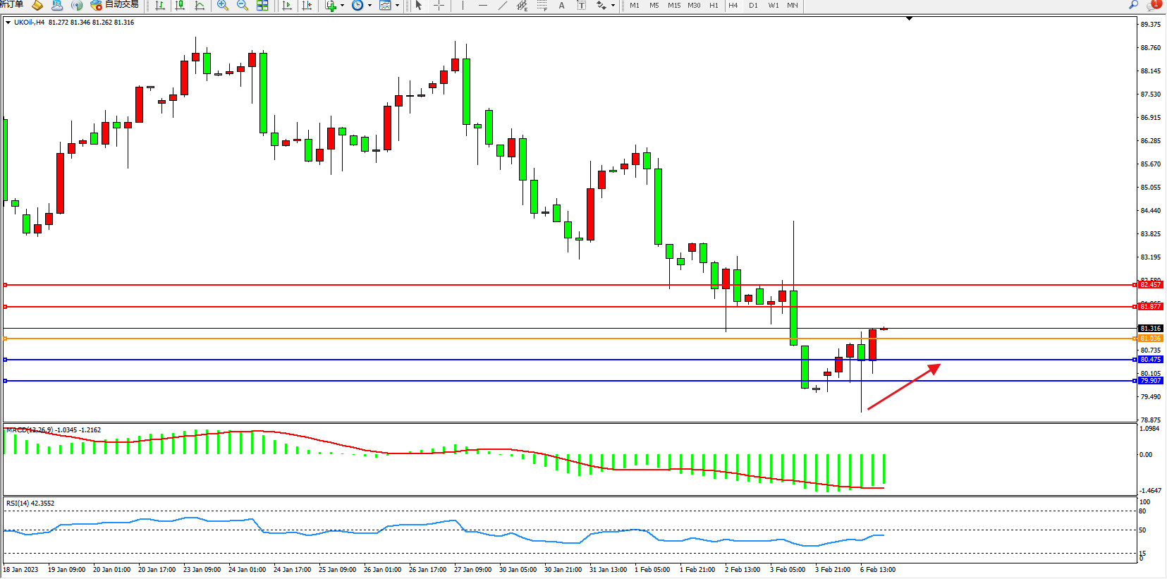 布油UKOil——4小时K线图显示: